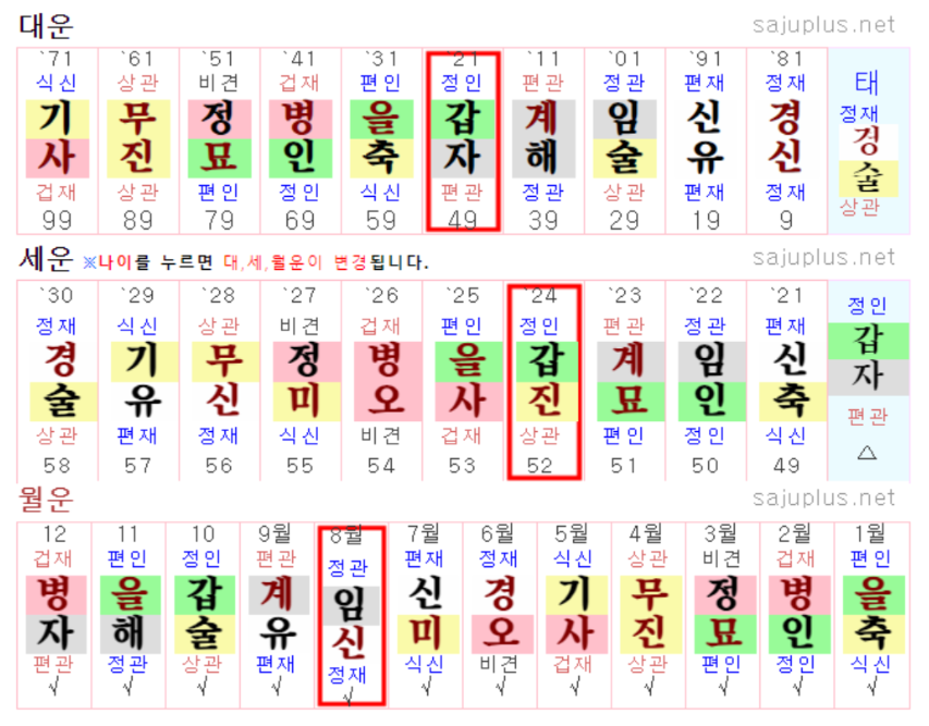 대운, 세운, 월운은 각각 다른 운을 뜻하므로 참고하시기 바랍니다.