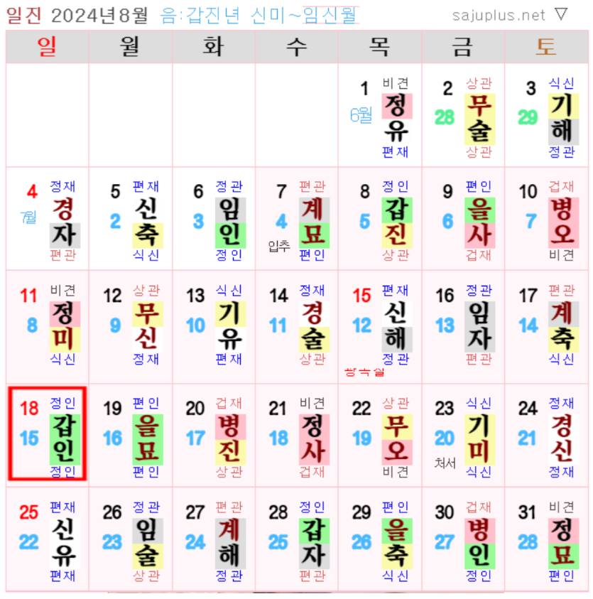 - 일진 : 일운을 의미, 한달의 운을 확인할 수 있음