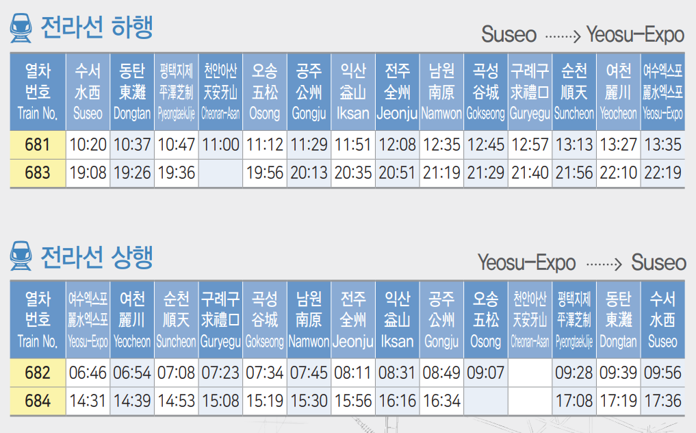 ☑️수서 - 여수엑스포 전라선 SRT 시간표