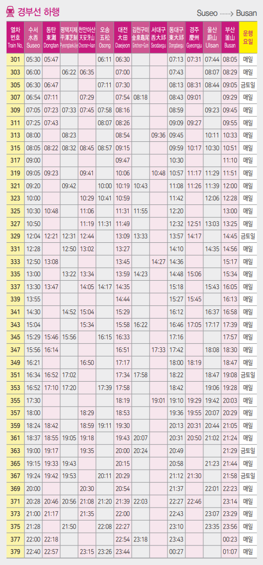 ☑️ 수서역 - 부산 경부선 SRT 시간표
