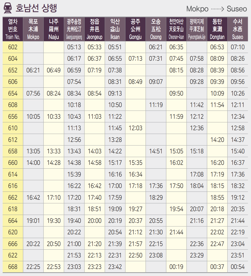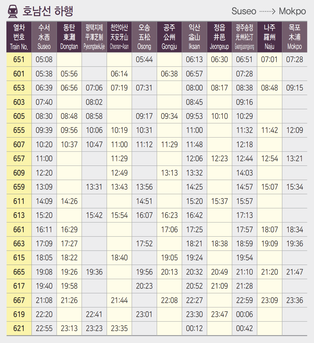 - 수서에서 목포로 가는 호남선