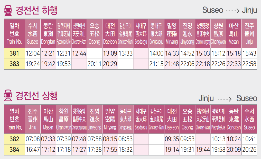 ☑️수서 - 진주 경전선 SRT 시간표