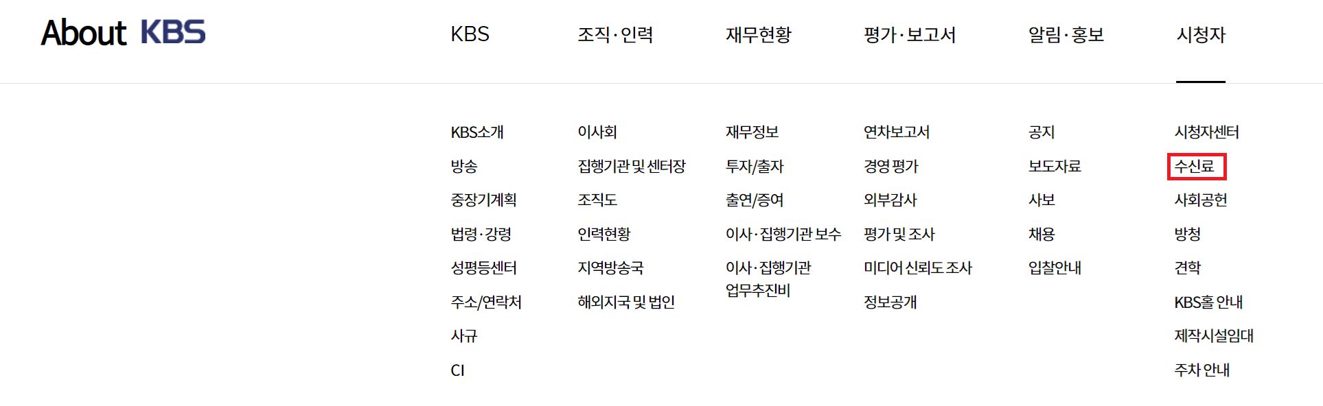 KBS 홈페이지 접속 > About KBS > 시청자 > 수신료 클릭